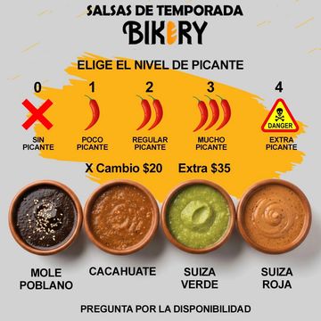 Estas son las recetas fundamentales de Bikery, disponibles todo el año. Al igual que con las de temporada, tú eliges qué tanto quieres que "pique" tu plato.