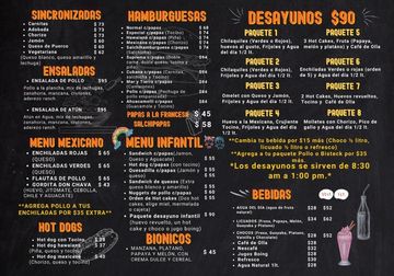 Esta es la segunda parte del menú de Lonchería México, que se enfoca en desayunos completos, hamburguesas, antojos mexicanos y bebidas. Aquí tienes el detalle: